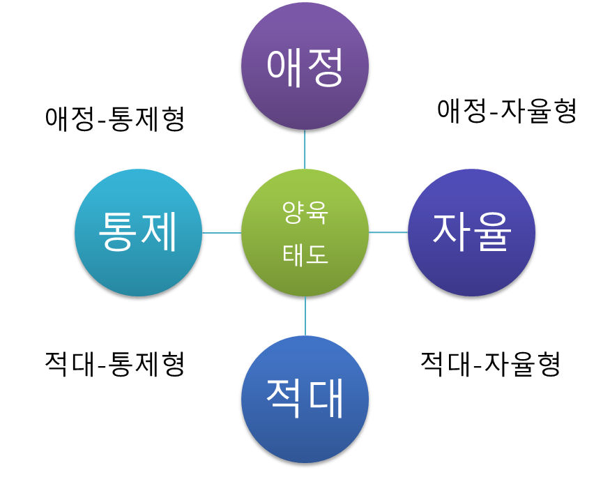 부모의 양육태도를 결정하는 여러 요소에 대해 앞선 포스팅에서 살펴보았다면, 이번 포스팅에서는 양육태도에는 어떤 유형이 있는지 살펴보고자 한다. 양육태도의 유형은 애정, 자율, 적대, 통제 이 네 가지를 통해 살펴볼 수 있다.